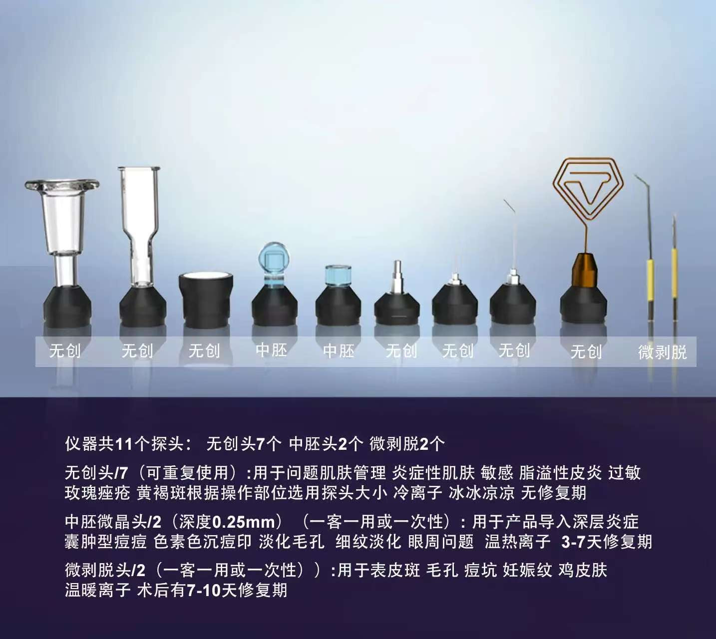 Nozzle Head: Targets acne and infection-prone skin with precise ion energy.