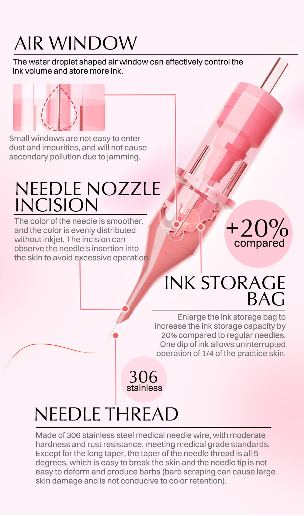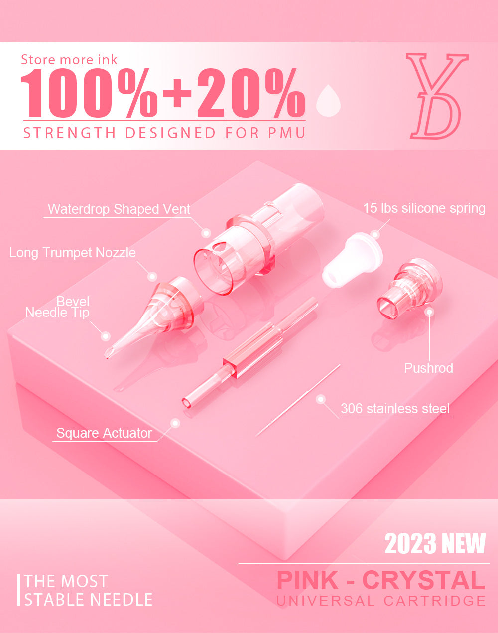 - Modern and visually appealing, the translucent pink cartridge exudes sophistication, aligning with the preferences of PMU professionals.